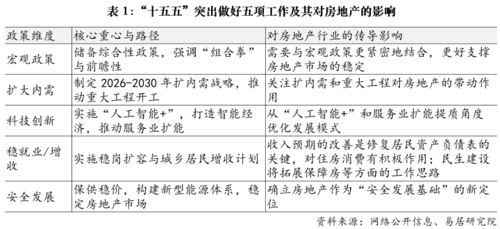 1.逻辑重构:我们需要从传统认知中转变过来。过去,房地产通常被视为城镇化的主体、内需的核心、居民家庭的重要金融资产、宏观经济的压舱石或支柱产业。而现在,它被纳入“安全发展基础”的范畴。“稳定”成为第一要务。这是对“十五五”房地产发展定位更为准确的理解。值得关注的是,以往谈及房地产风险,通常是与地方债、中小金融机构风险并列;而现在则是与粮食、能源安全归入同一范畴,这有助于我们更清晰地把握后续发展定位。